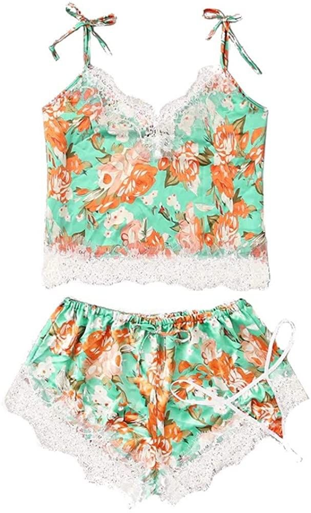 $17.46 Lingerie for women for sex sexy womens satin lace silk camisole shorts bow set sleepwear p… [ad_1]