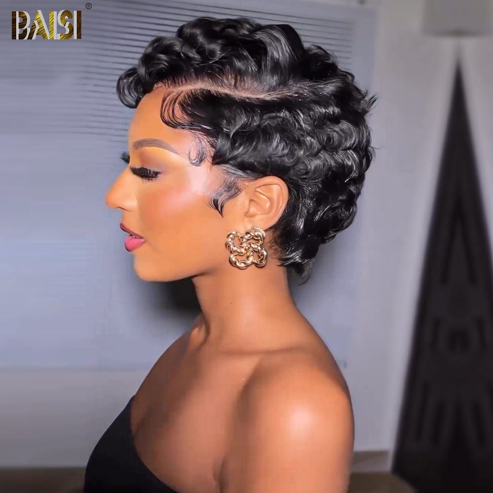 100+ BAISI Sexy Finger Wave Pixie Lace Wig